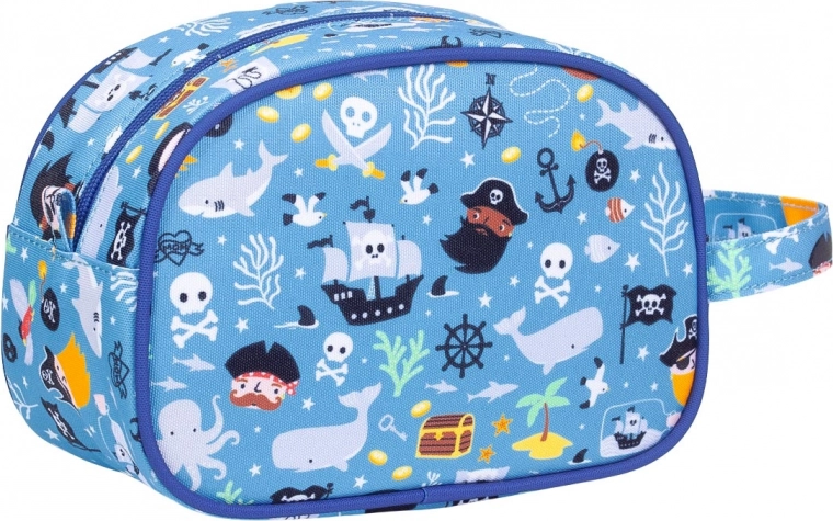 Denne blå toilettaske tilbyder alt, hvad et barn har brug for på rejser. Den har et rummeligt rum med plads til alle nødvendige hygiejneartikler som shampoo, sæbe, tandbørste og tandpasta. Med det praktiske håndtag er det nemt at bære og hænge tasken.