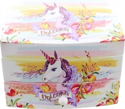 Træsmykkeskrin med enhjørningemotiv, som ikke kun er et stilfuldt element til børneværelset, men også en praktisk opbevaring til små skatte. Det er den perfekte gave til børn, der vil glæde med sin magi.