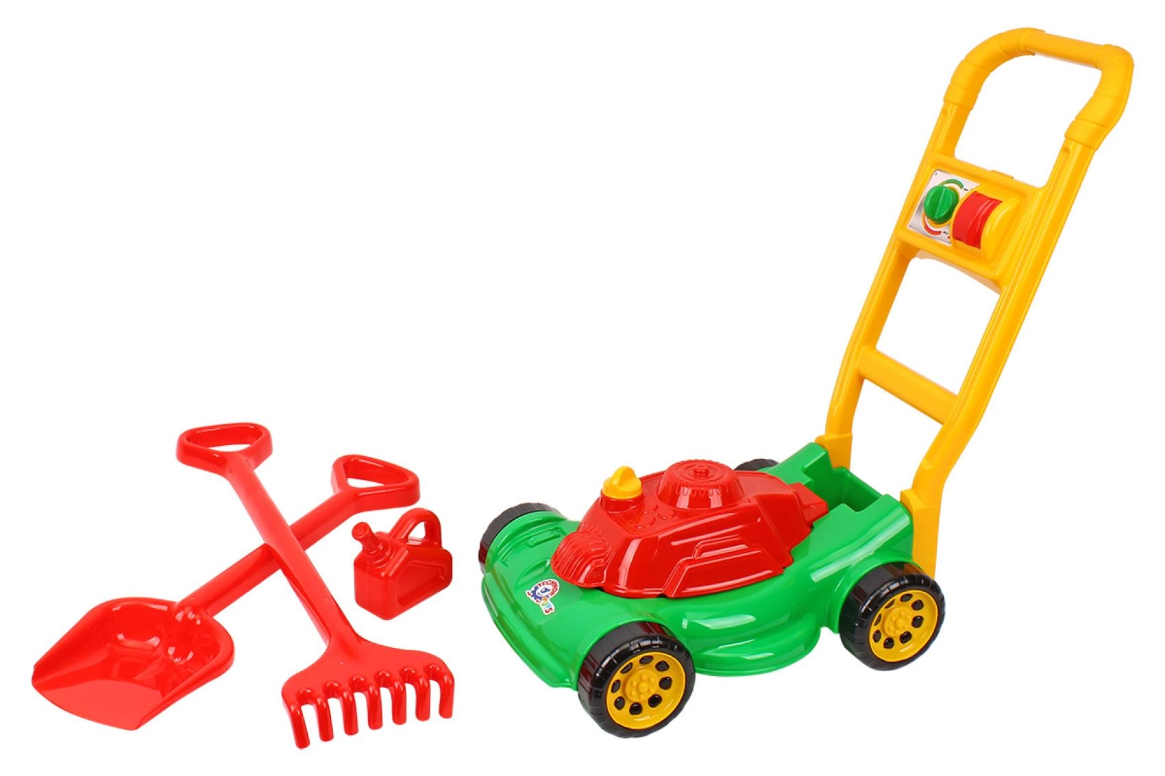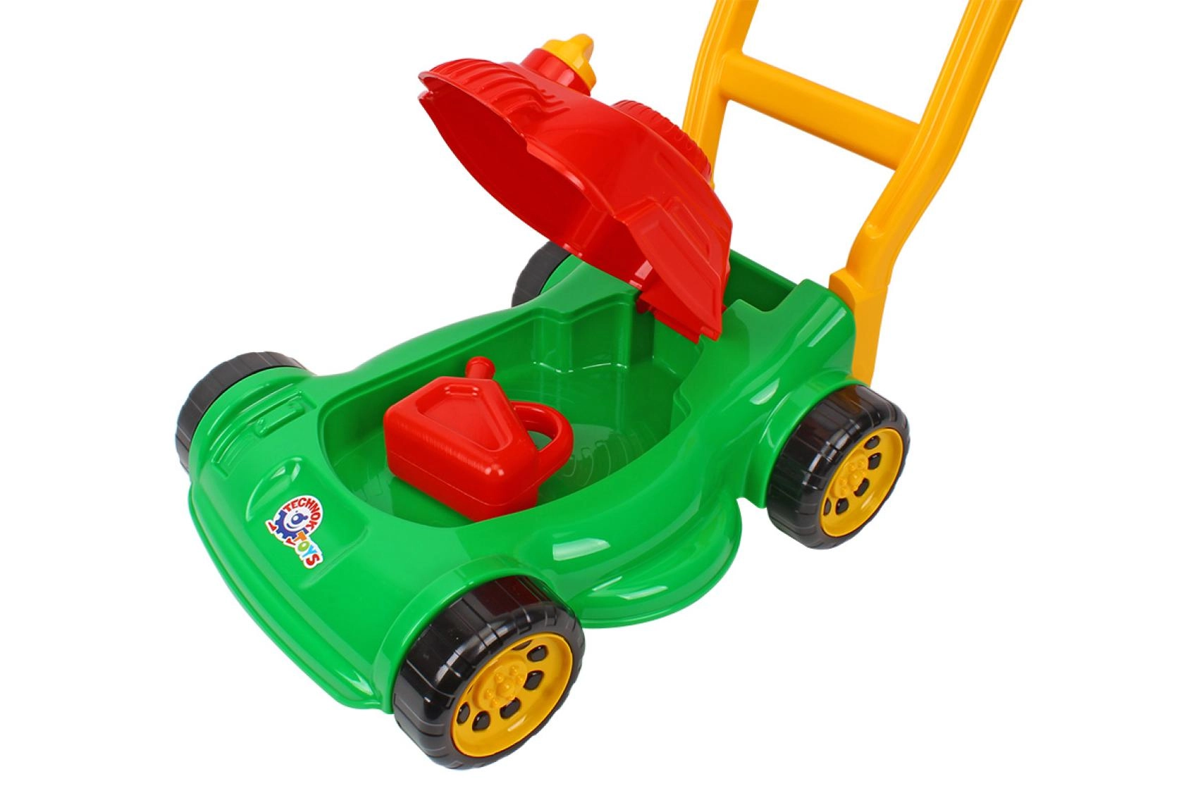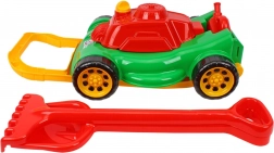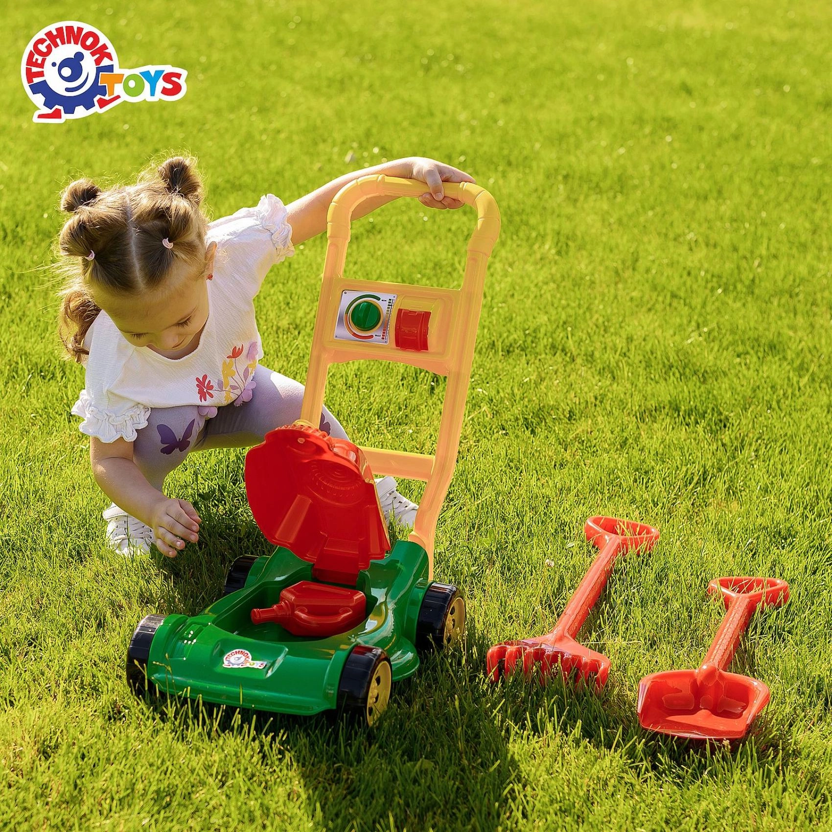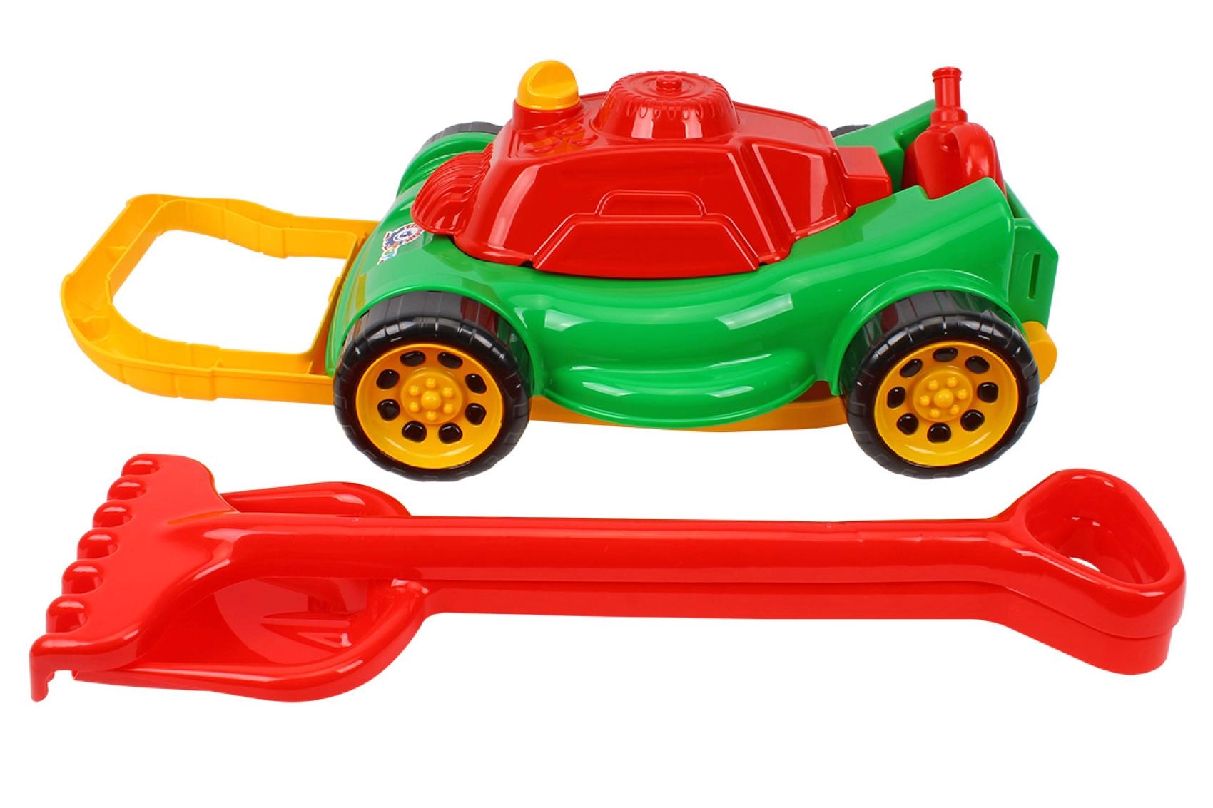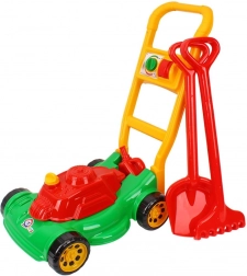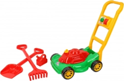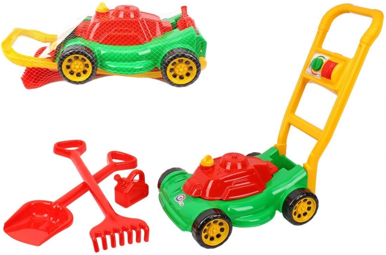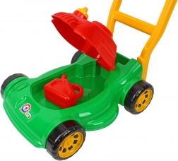 Denne farverige plastgræsslåmaskine med tilbehør er et fantastisk legetøj til de første haveforsøg. Børn kan skubbe maskinen, dreje betjeningsknapper og efterligne de voksnes arbejde, hvilket udvikler deres motorik og fantasi. Den lette konstruktion og afrundede kanter sikrer sikker leg for de mindste.