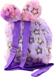 Rygsækken er lavet af blød plys, hvori der er indarbejdet glitrende, gyldne stjerner. De ører, der stikker op foroven, giver et eventyrligt præg, og hele kombinationen af pastelfarver er børnevenlig. Rygsækken har ét hovedrum med lynlås og en mindre forlomme, ideel til småting.
