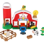 Oplev glæden ved landet med denne farverige bondegård for de mindste. Den store lade med silo, traktor, dyr og landmand indbyder til endeløs rolleleg, mens der ved tænding afspilles realistiske lyde, som vækker legen til live. Takket være den robuste plastkonstruktion og afrundede kanter er sættet sikkert og velegnet fra 18 måneder og fremmer både fantasi og finmotorik.