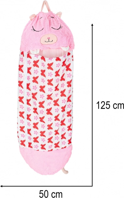 Leder du efter en komfortabel og legende løsning til børns overnatninger? Denne lyserøde 2-i-1 børnesovepose bliver til et sødt plysdyr, når den foldes sammen – en favorit hos børn. Den bløde plys-overflade og den varme PP-fiberfyldning sikrer en behagelig nattesøvn.