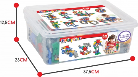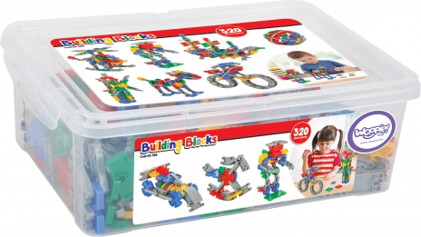 Det omfattende WOOPIE byggesæt med 320 farverige dele udvikler børns fantasi og færdigheder. Takket være forskellige former og forbindelsesmetoder kan børn bygge stabile 2D-/3D-modeller samt konstruktioner med bevægelige dele. Fremstillet af sikkert og holdbart materiale, opbevaret i en praktisk boks med låg – ideel til leg derhjemme, i børnehaven og til terapi.