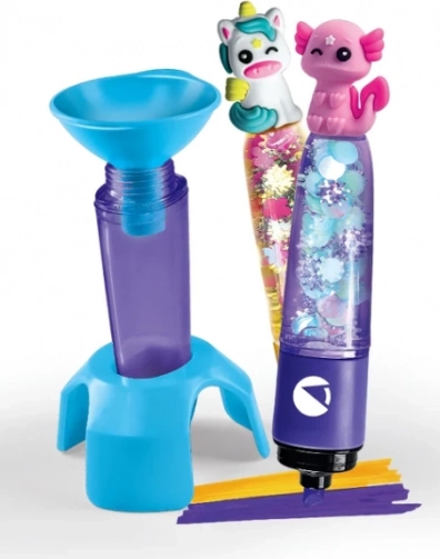 Oplev kreativ sjov med mini-fabrikken til overstregningstuscher fra Clementoni. Børn kan lave deres egne overstregningstuscher, vælge farvede blæk og dekorere dem med magiske dyr. Et praktisk sæt uden behov for batterier, der stimulerer fantasi, finmotorik og kreativt udtryk.
