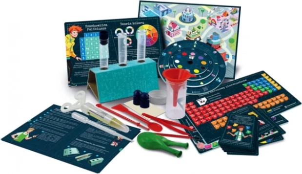 Dette uddannelsessæt forbinder kemiens verden med mysterier og detektivarbejde. Barnet bliver en lille forsker, der løser opgaver, udfører sikre eksperimenter og ved hjælp af spor bevæger sig frem i historien. Takket være den legende tilgang bliver læring nem, sjov og motiverende.