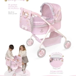 Den charmerende dukkevogn fra Sophie-kollektionen er skabt med fokus på komfort, sikkerhed og nem håndtering. Det lyserøde design suppleres af diskrete grå og hvide detaljer, som understreger den romantiske stil. Takket være det lave håndtag og den lette konstruktion er den særligt velegnet til de mindste piger.