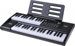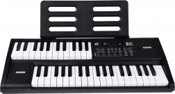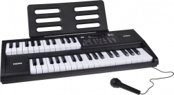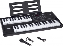 Pakken indeholder en mikrofon og et nodenodestativ. Keyboardet er kompakt med indbyggede højttalere og enkel betjening – ideelt til hjemmemusik, akkompagnementsøvelser og dine første egne kompositioner.