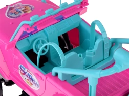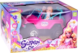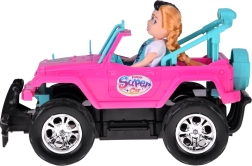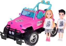 Tag på eventyr-safari med den pink terrængående bil til dukker. Den åbne kabine med turkise sæder og justerbare seler sætter de medfølgende figurer sikkert fast. Store gummihjul og en kofanger giver bilen et offroad-look, mens forreste LED-lygter tilfører realistisk effekt under kørslen.