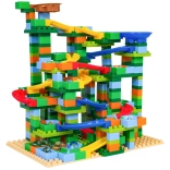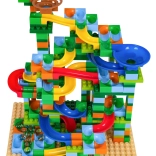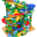 Byg din egen farverige kuglebane og se kuglerne suse gennem sving, tragte og nedkørsler. Med det omfattende sæt på 402 elementer kan du bygge utallige varianter, hvor børnene naturligt træner hånd-øje-koordination og logisk tænkning.