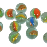 Pakken indeholder 12 glaskugler med farvede mønstre – ideelle til løb, tidsudfordringer og eksperimenter med tyngdekraften.