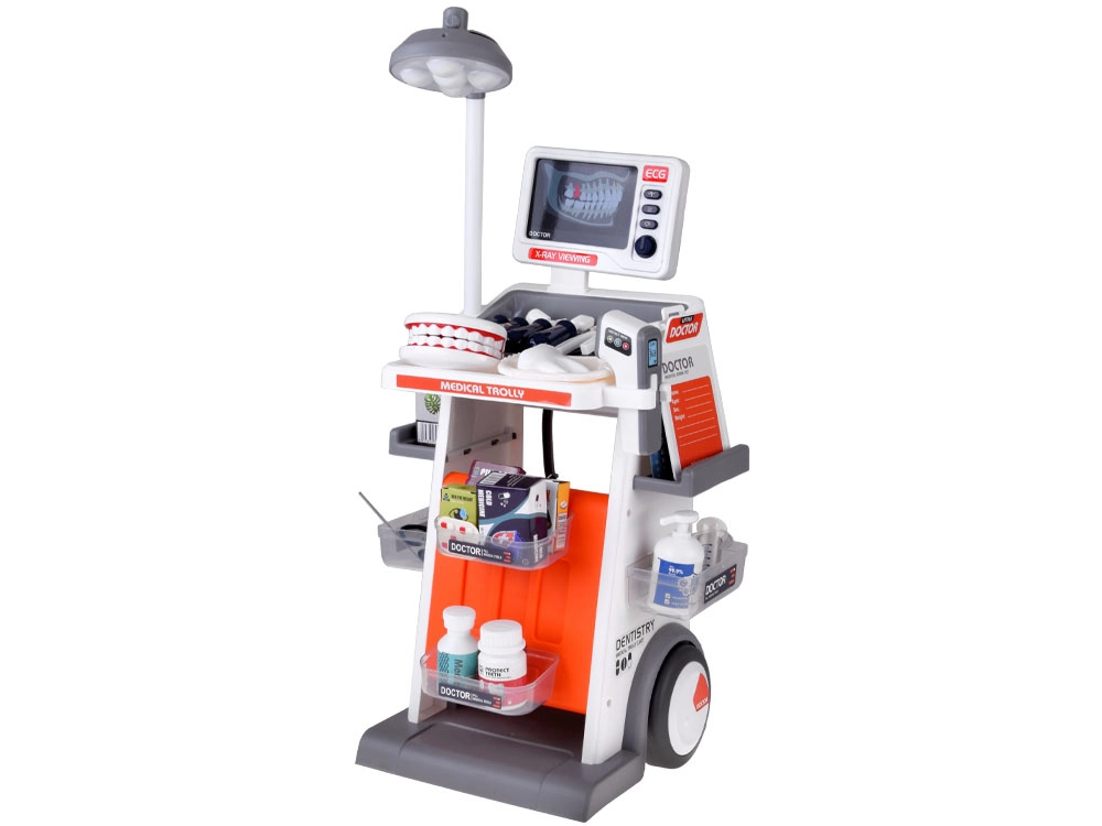 Forvandl børneværelset til en lille klinik. Det interaktive rullebord med “X-Ray/ECG”-monitor, lampe, rum og drejelige hjul tilbyder autentisk rolleleg som læge og tandlæge. Børn kan lytte til hjertet, “røntgenfotografere” patienten, tjekke tænder på kæbemodellen og på en sikker måde prøve almindelige procedurer. Realistiske lys- og lydeffekter forstærker oplevelsen og motiverer til at udforske.