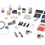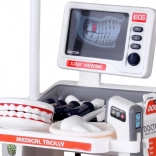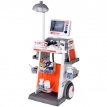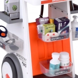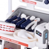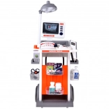 Inkluderer et bredt udvalg af tilbehør: stetoskop, termometer, tandlægespejl med LED, pincet, saks, tandbørste, kapsler, “medicinskasser”, model af åbnbar kæbe samt separat “tand”, EKG-kort og røntgenkort. Takket være den mobile konstruktion og opbevaringshylder er sættet ideelt til delt leg og til at holde orden.