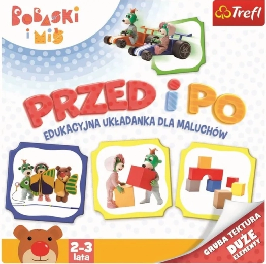 Opdag det smarte puslespil “Før og efter” inspireret af figurerne fra den populære serie BOBASKI I MIŚ. Børn forbinder farverige billeder til fortællende par og udvikler dermed logisk tænkning, fortælleevner og koncentration. Store og stærke brikker er ideelle til små hænder og sikrer sikker leg fra 2 år.