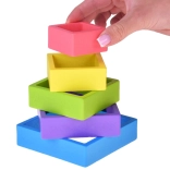 Mættede nuancer og forskellige geometriske former understøtter genkendelse af farver og former samt sortering efter størrelse og mønstre.