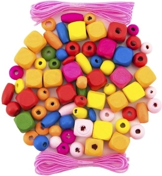 Dette sæt indeholder forskellige typer og former af perler i glade farver. Børn kan trække perlerne på elastikker og skabe unikke armbånd og kæder, der kan strækkes.