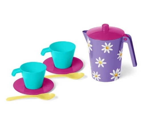 Dette lille kaffesæt er et fantastisk supplement til legekøkkenet og ideelt til at lege café, fem-o-te eller fødselsdagsfest for dukker. Kanden er dekoreret med IML-grafik med søde margueritter, og alle dele er omhyggeligt forarbejdet for komfortabel og sikker brug.