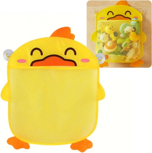 Sød badeværelsesorganisator formet som en gul and hjælper med at holde orden i badekar og brusekabine. Den rummelige frontnet rummer badelegetøj og småting, tørrer dem hurtigt og modvirker skimmel. Takket være 2 sugekopper fastgøres den nemt på glatte fliser eller glas. Et perfekt tilbehør til badeværelset og børneværelset.