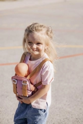 Sidelukning og en solid frontlomme holder dukken stabilt på plads, også når man er i bevægelse.