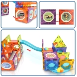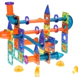 Kreativt magnetisk byggesæt med lyselementer og gennemsigtige rør gør det muligt for børn at bygge en kuglebane, tårne og tunneler. Takket være 116 dele med stærke magneter er det let og intuitivt at samle, og de lysende kugler samt projektører giver konstruktionerne en effektfuld oplevelse, især i skumringen. Perfekt til STEM-læring, udvikling af logik og finmotorik.