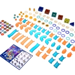 24× kvadratvæg med forskellige åbninger, 16× runde holdere, 21× bredt rør, 4× smalt rør, 2× rør med uregelmæssig form, 4× trekant (muliggør bygning af tårne), 4× sving, 7× smalt sving, 18× vindue, 4× kugle, 4× lysende kugle, 2× bevægelig projektør (lys), 3× kuppellys, 2× ottekantet lys, klistermærker, illustreret vejledning