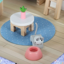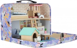 Magisk dukkehus i kuffert til dyreelskere, som byder på en toetagers mini-bolig fuld af detaljer og tilbehør. Det er let at bære takket være det praktiske håndtag, og efter leg rydder du hurtigt alting væk i kufferten, så værelset forbliver ryddeligt. Træmøbler, hund og kat med egne skåle, hundehus og kradsetræ understøtter kreative rollelege hjemme og på farten.