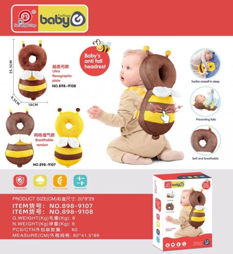 Let og blød sikkerhedspude formet som en bi, der beskytter barnets hoved under de første skridt fra ca. 12 måneder. Ergonomisk form, justerbare stropper og behageligt plys-materiale sikrer komfort, fuld bevægelsesfrihed og nem påtagning som en lille rygsæk. Kan også bruges som pude eller krammelegetøj.