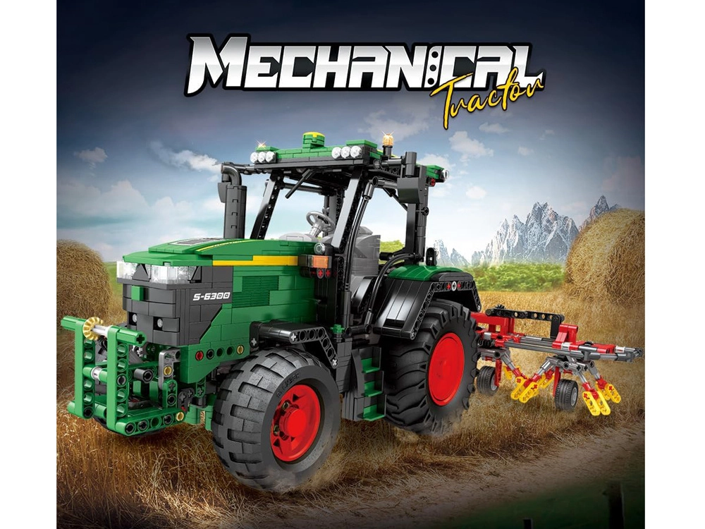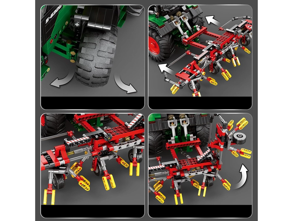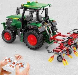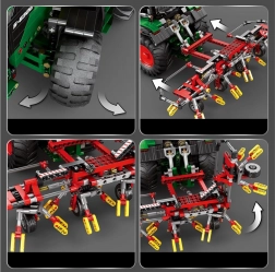 Byg en realistisk model af en landbrugsmaskine: en fjernstyret traktor med harver og 1664 dele. Den byder på motoriserede funktioner, store gummihjul, LED-lys og rigeligt tilbehør, inklusive fjernbetjening og 7,4 V batteripakke for autentisk kørsel og leg.