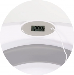 Det integrerede termometer hjælper med at indstille den ideelle vandtemperatur. Afløbshullet med praktisk prop gør tømningen hurtig uden at løfte badekarret.