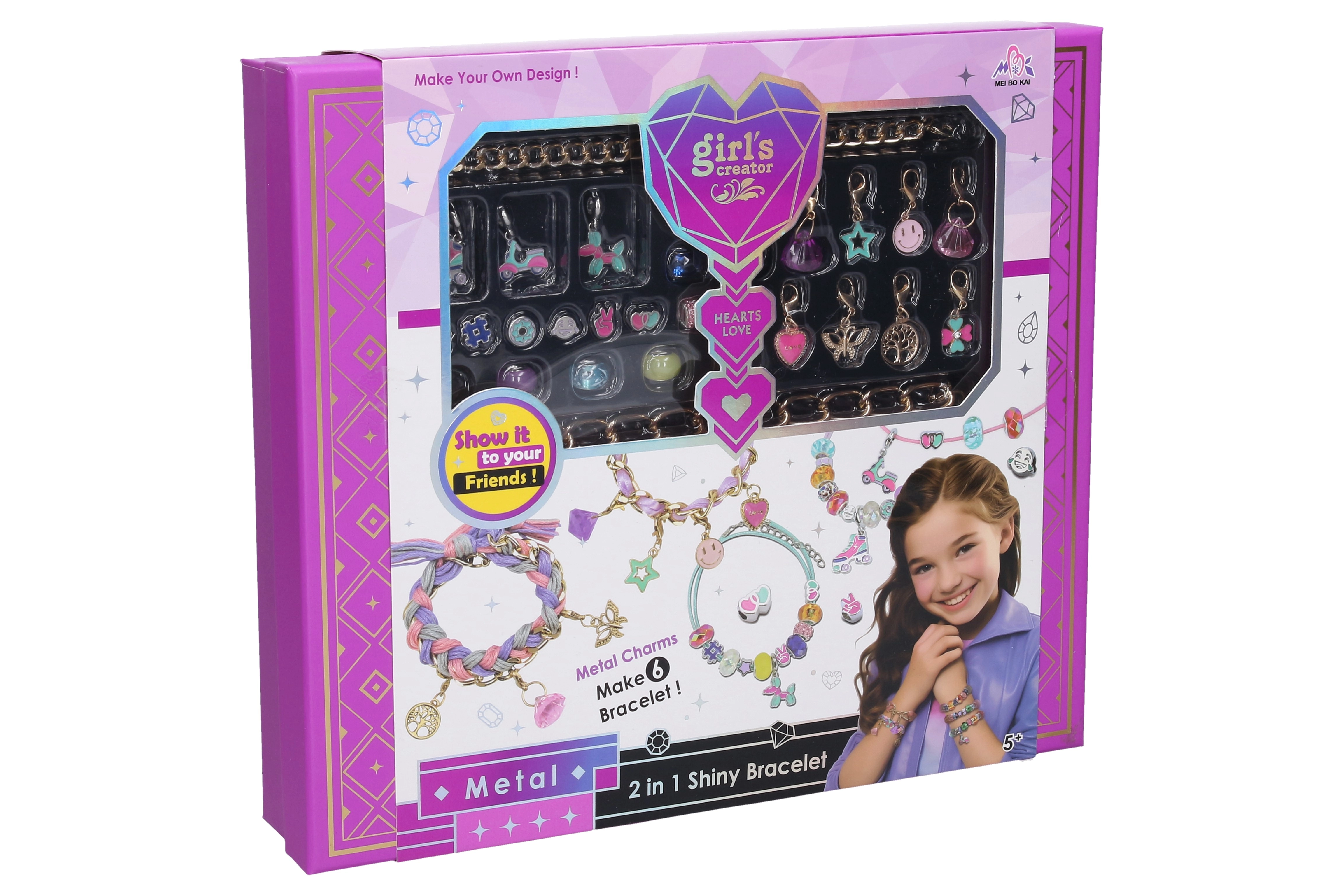 Sættet er ideelt til kreative eftermiddage, fødselsdagsværksteder eller til at lave personlige gaver. Styrk kreativiteten og skab en samling armbånd præcis efter din egen stil.