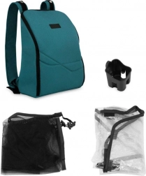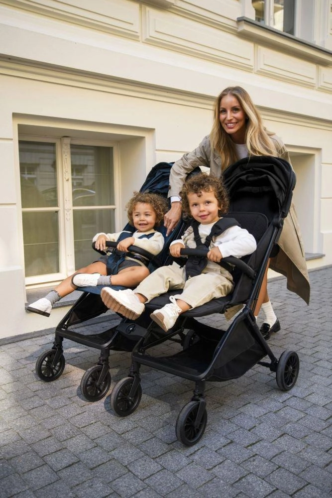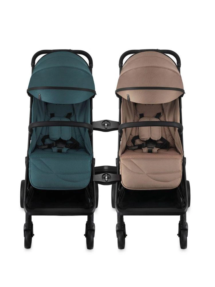 I sættet får du alt det nødvendige: stilren klapvognsrygsæk, kopholder, myggenet og regnslag. Et valgfrit forbindelsessæt med adaptere gør det muligt at koble to klapvogne sammen til en praktisk søskende-/tvillingeløsning. Der medfølger 5-punkts sikkerhedsseler og en rummelig kurv med bæreevne på 2 kg.