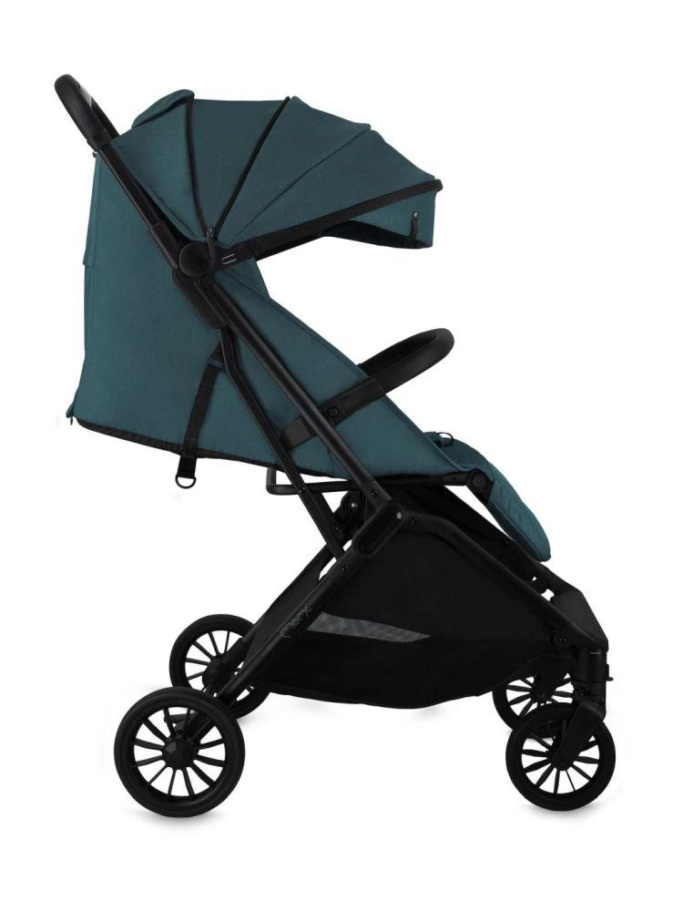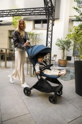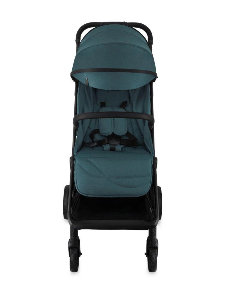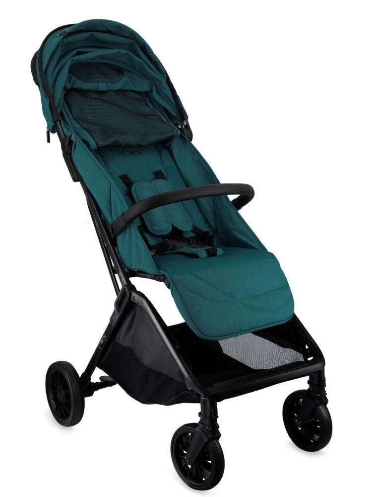Barnet får komfort med trinløs justering af ryglænet helt ned til hvileposition samt 4-trins fodstøtte. Den udvidelige kaleche med kontrolvinduer og bageste ventilationspanel i net sikrer luftcirkulation på varme dage. Slangeløse EVA-hjul med diameter 6,5" foran og 7" bagpå kører jævnt over brosten og ujævnheder.