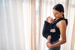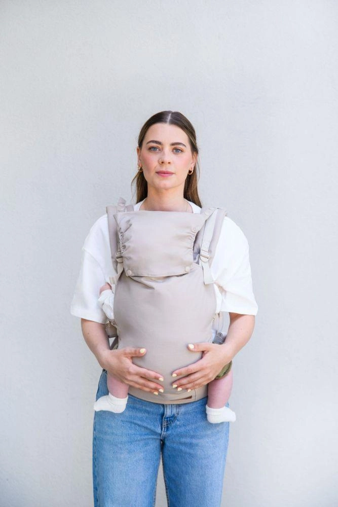 Bær barnet foran fra ca. 3 måneder og på ryggen fra cirka 12 måneder. Aftagelig hætte, lomme og elastikker på stroppenderne gør daglig brug nemmere.