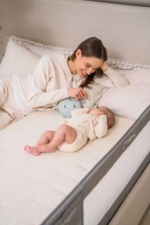 Sengehætten MoMi LEXI XL PLUS er en pålidelig hjælper for både forældre og børn – den passer til samsovning hos forældre og til en selvstændig børneseng. Konstruktionen med blød polstring og et stort panel af åndbart net giver sikkerhed og samtidig et fremragende overblik over barnet. En sikkerhedslås forhindrer utilsigtet sammenklapning under søvn.
