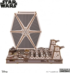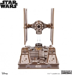 Fans vil glæde sig over det detaljerede cockpitinteriør, bevægelige laserkanoner og farvet krydsfiner, der giver modellen et realistisk udseende. Samlingen foregår uden lim og værktøj, og den mellem-svære sværhedsgrad gør det til et sjovt projekt for mere erfarne byggere. Modellen er kompatibel med Luke Skywalkers X‑Wing-jager fra Ugears – soklerne kan forbindes og skabe en intens scene fra Dødsstjernen.
