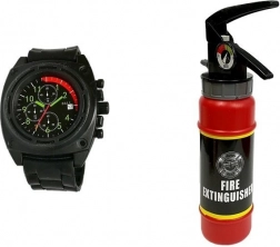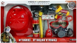 I pakken finder du hjelm, maske, slangestuds, lille økse, koben, håndholdt brandslukker, walkie-talkie og ur. Sættet leveres i en gaveæske med vindue, så det er en oplagt gaveidé til små brandmandsentusiaster.