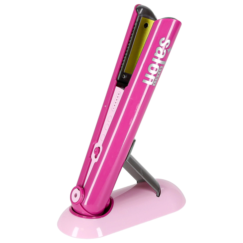 Børneglattejernet lyser og laver lyd ved tryk, men bliver ikke varmt. Sikker underholdning og et realistisk look støtter kreativ leg.
