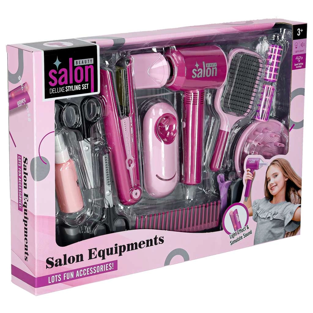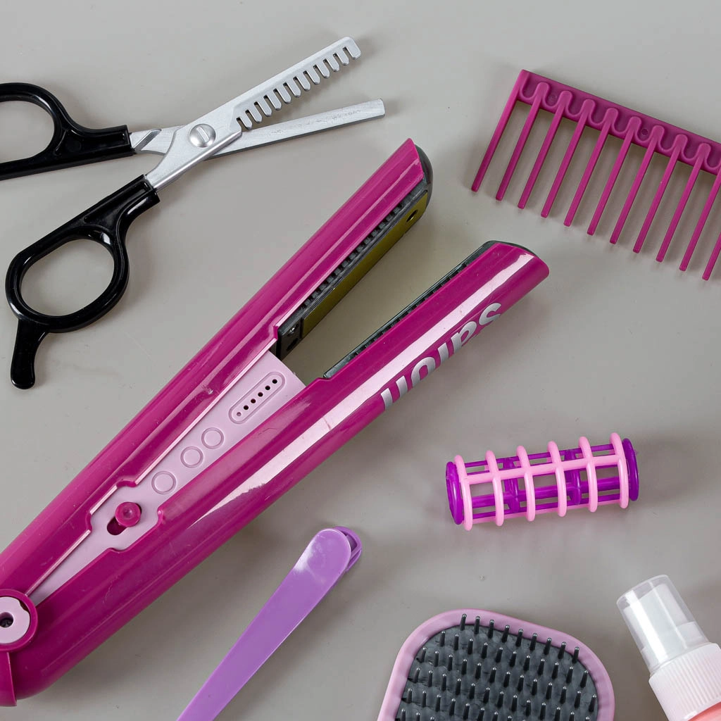 Frisørsæt til børn med interaktiv hårtørrer og glattejern, 16 dele