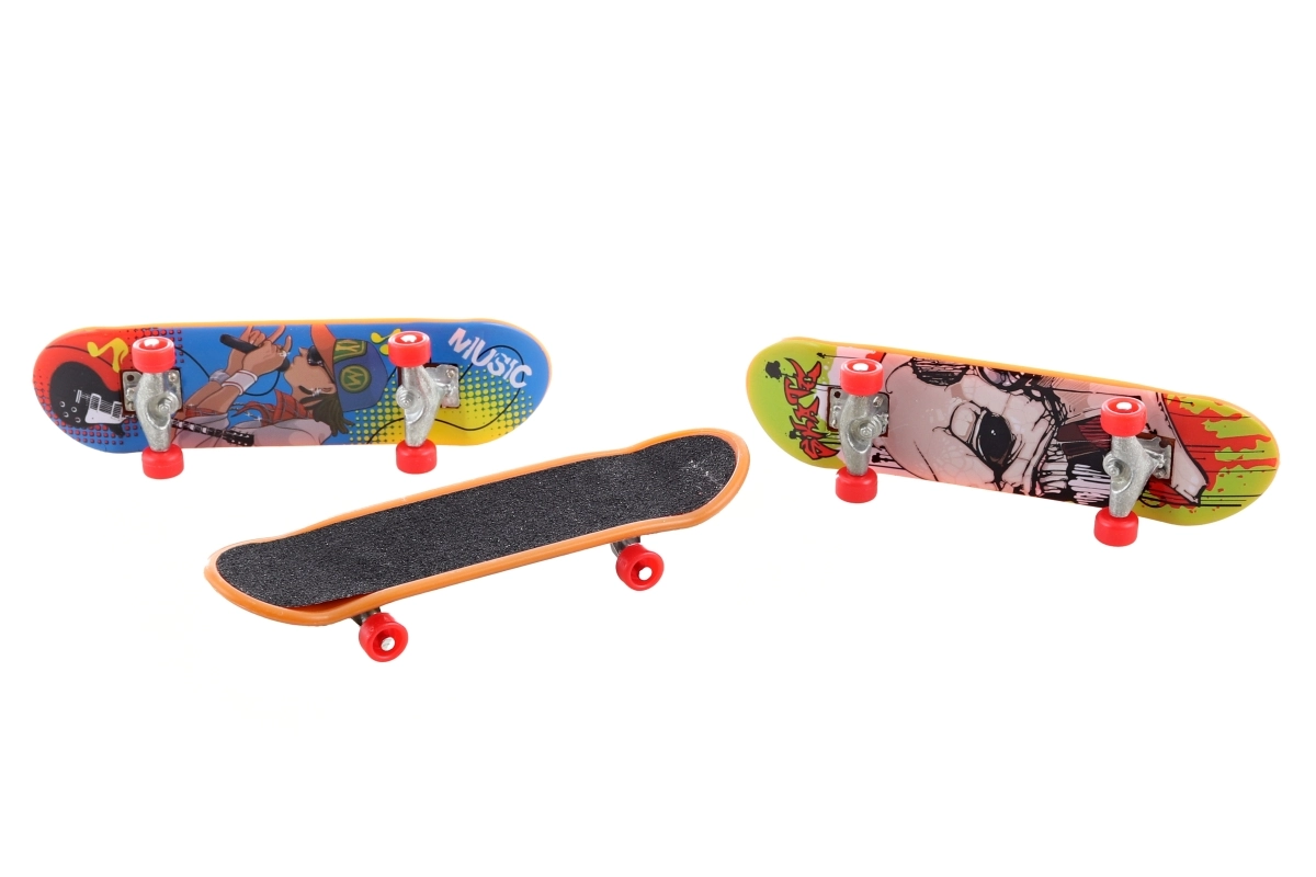 Nyd uendelig sjov med dette sæt med 3 fingerboards for både små og store riders. Hvert mini-skate på ca. 9,5 cm er lavet af holdbar plast og metal, ideelt til at lære tricks på bordet eller rampen. Perfekt som gave, til samlere og til at udvikle finmotorik og kreativitet.