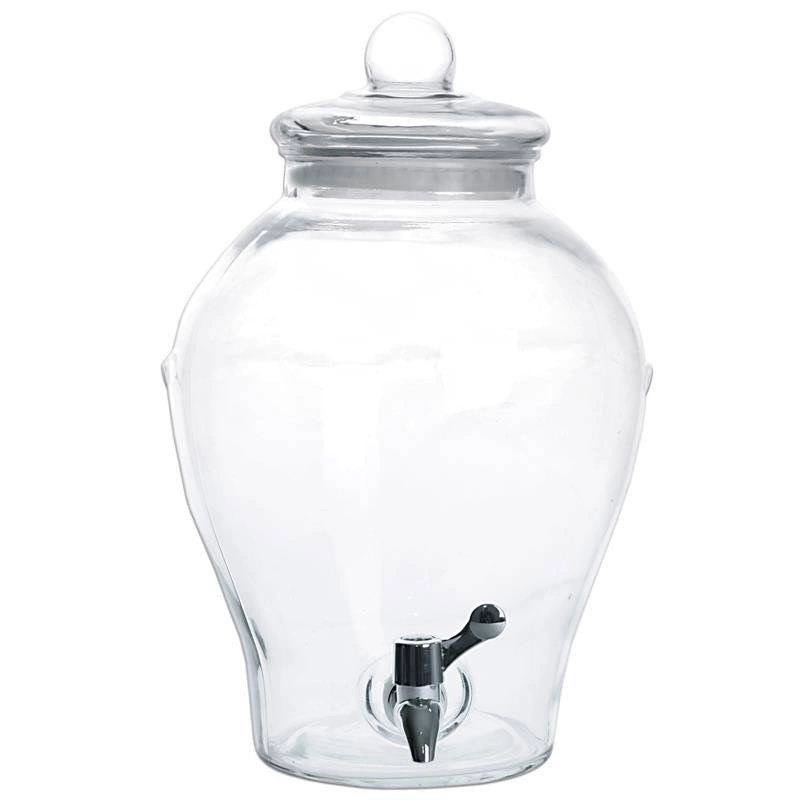 Elegant glasdispenser til drikke med en kapacitet på 6,5 liter giver praktisk og hygiejnisk servering af vand, hjemmelavet lemonade, iste eller punch. Det gennemsigtige, tykvægget glas er fødevaresikkert og neutralt i smag, og metalhanen muliggør nem tapning uden spild.