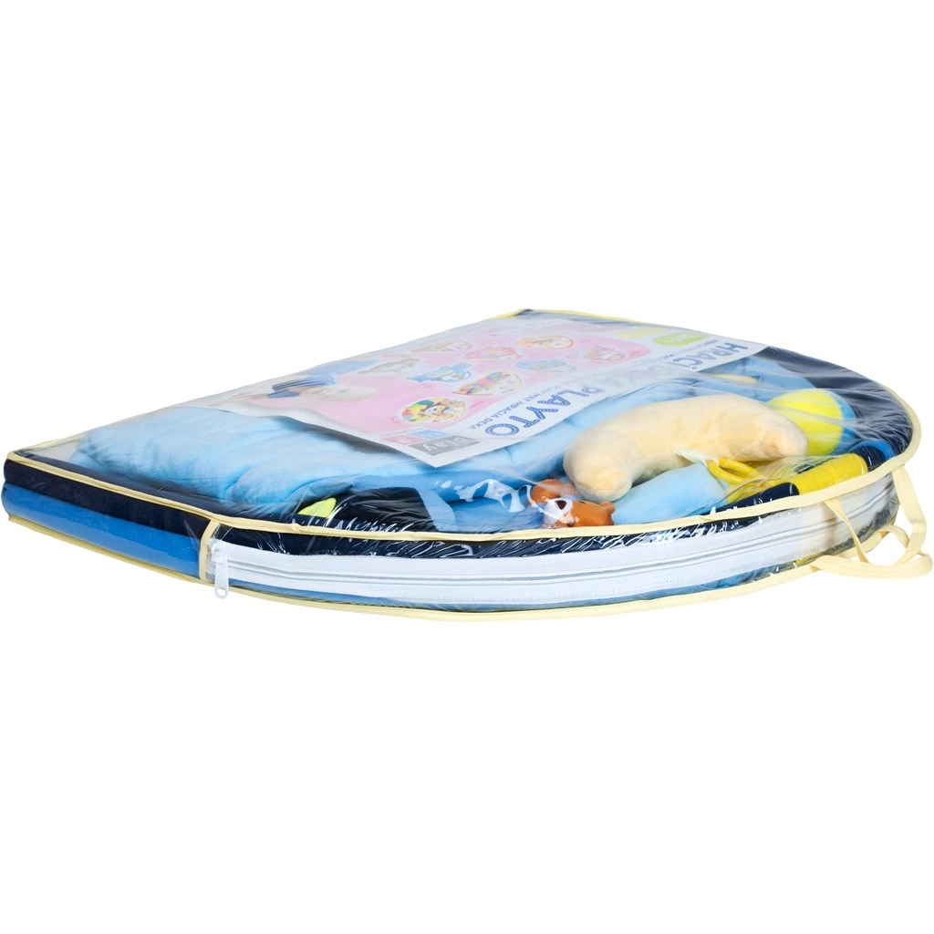 Tæppet er udstyret med en bøjle med aftageligt legetøj, der knitrer og bevæger sig, hvilket vækker barnets nysgerrighed og udvikler motorikken. Det kan nemt bruges både hjemme og ude og skaber et hyggeligt og sikkert miljø til leg og afslapning.