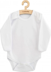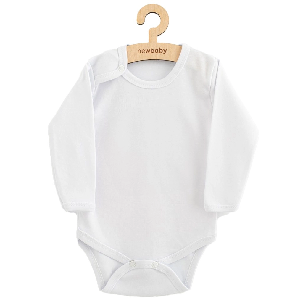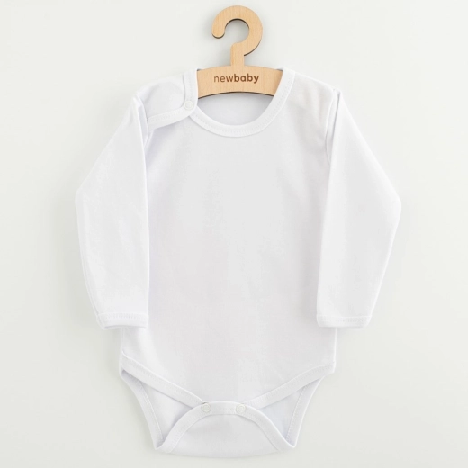 Klassisk babybody fra New Baby med lange ærmer i universel hvid farve. Takket være trykknapper på skulderen og mellem benene er påklædning og bleskift hurtigt og bekvemt. Fremstillet af 100% bomuld for maksimal blødhed og komfort for sart babyhud.