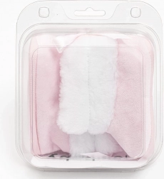 Tøflerne er pakket i en praktisk gennemsigtig æske med ophæng – en glædelig gave til en nyfødt.