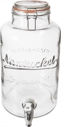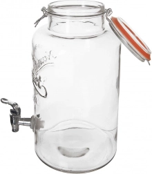 Stilfuld glasdispenser til drikkevarer med en kapacitet på 6,7 l, metalhane og lufttæt kliplåg – ideel til hjemmelavet lemonade, vand med frugt og iste. Den store åbning gør det nemt at fylde og rengøre, det slidstærke, tykvægget glas med relief præsenterer indholdet flot, og låget med silikonepakning beskytter drikkevarerne mod insekter.
