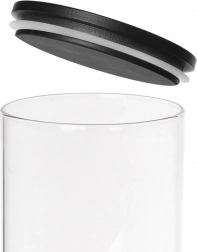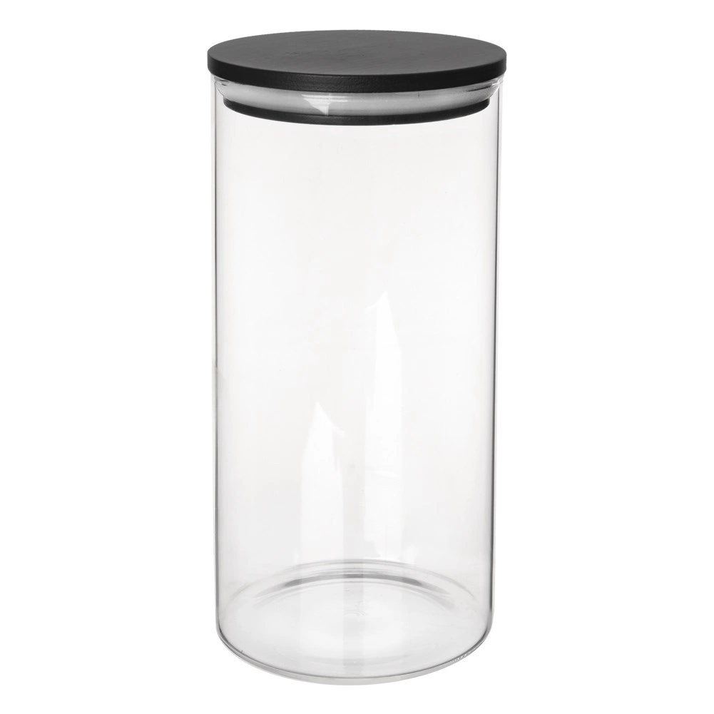 Praktisk glaskrukke på 980 ml med sort låg og silikontætning, som holder dine madvarer friske længere. Den er lavet af holdbart borosilikatglas og er ideel til organisering af spisekammeret, opbevaring af tørvarer og nem kontrol af indholdet takket være det transparente design.