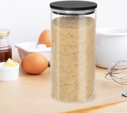 Elegant og funktionel køkkenkrukke til sikker opbevaring af kaffe, pasta, nødder, müsli eller tørrede svampe. Borosilikatglas modstår temperatursvingninger, og silikontætningen i låget sikrer høj tæthed og længere friskhed på madvarerne.