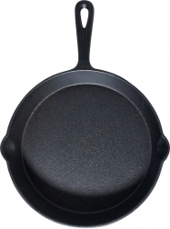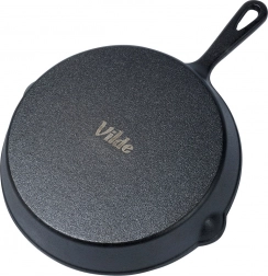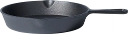 Denne pande i sort fuldstøbejern er usædvanligt robust og holdbar. Støbejern fordeler og holder på varmen fremragende, så du opnår perfekt tilberedning af kød, grøntsager og kartofler, og maden holder sig varm længere. To sidehældetud gør det let at hælde safter og saucer uden spild.