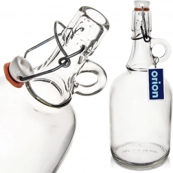 Denne glasflaske i retrostil kombinerer æstetik og funktionalitet. Tykkvægget klart glas er robust og gør det nemt at kontrollere indholdet, mens patentclip med gummi-/siliconepakning giver en pålidelig og lufttæt lukning. Velegnet til daglig brug hjemme, ved servering eller til opbevaring af drikke.