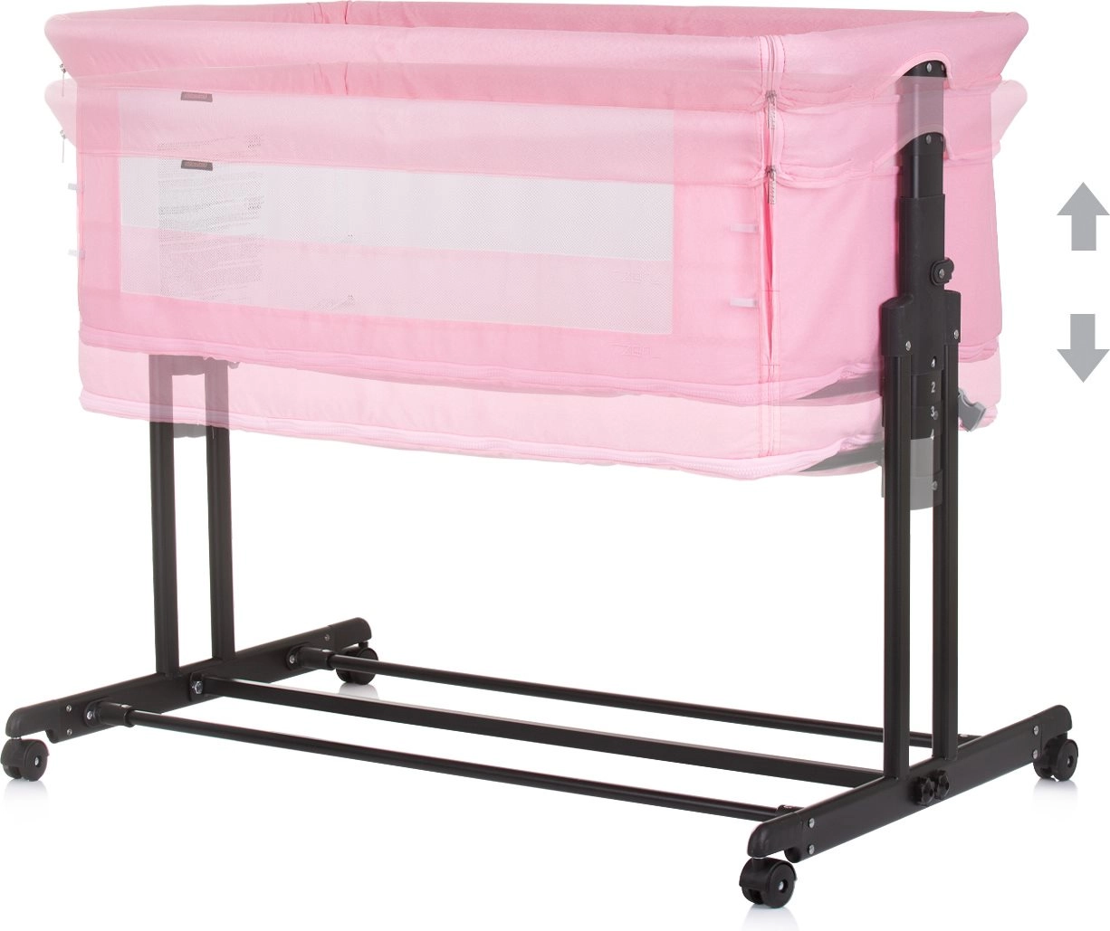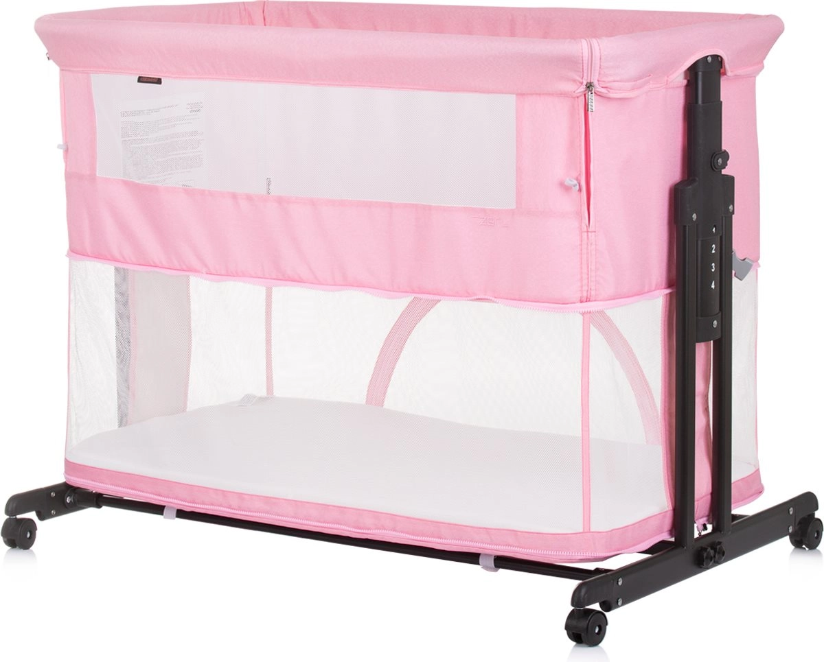 CHIPOLINO Zen Flamingo er en gennemtænkt løsning til rolig søvn og sikker leg. Med bedside-tilstanden kan den let fastgøres til forældrenes seng, så barnet er inden for rækkevidde. De åndbare netpaneler sikrer luftcirkulation og visuel kontakt, mens den stabile ramme med hjul og bremser gør det nemt at flytte rundt i hjemmet.