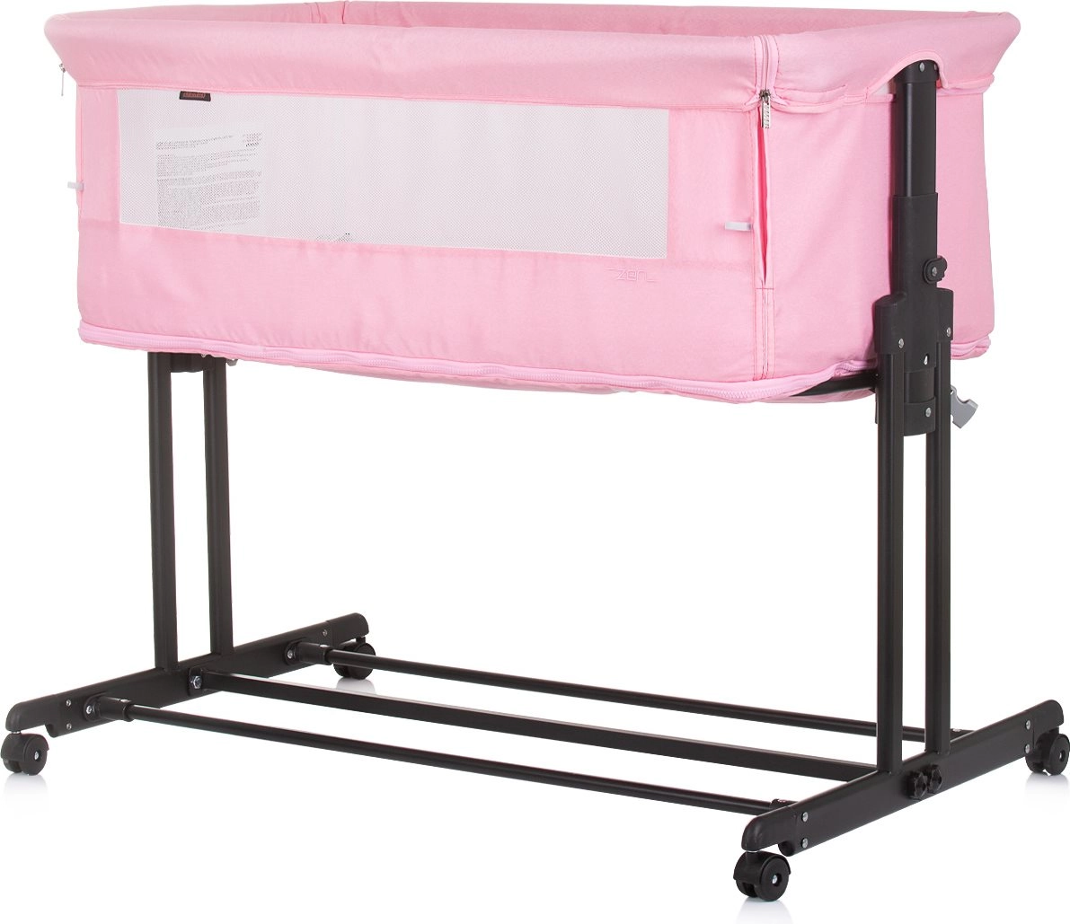 Praktisk 3-i-1 tremmeseng CHIPOLINO Zen Flamingo kombinerer tremmeseng, bedside crib og legegård i én. Den tilbyder 4 højdepositioner + antirefluks-hældning, åndbare net-sider, hjul med bremser for nem flytning og en blød madras med aftageligt bomuldsbetræk, der kan vaskes. Inkluderer myggenet og indgang med lynlås i legegårdstilstand.
