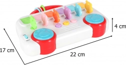 Panelet har musikknapper med melodier, en lydstyrkeknap med 3 niveauer og blå “pote”-kontakter med percussive lyde. Takket være de mange effekter og den enkle betjening får børn timevis af kreativ leg hjemme og på farten – trygt og med et smil.